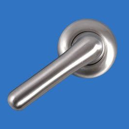 An Anti-ligature lever, set at 45 degrees on a 50mm rose, that is designed so that when pressure is applied, or a ligature is attached, the lever drops down to 90 degrees, causing a ligature to slip off. This lever is secured by set bolts through at 38mm centres and is available is stainless steel, alumnium and brass.